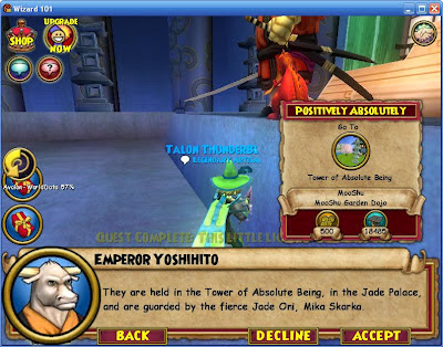 The quest starts off by going to Merle and going to Mooshu. You apparently receive 18,000 experience for going to Tower of Absolute Being...!